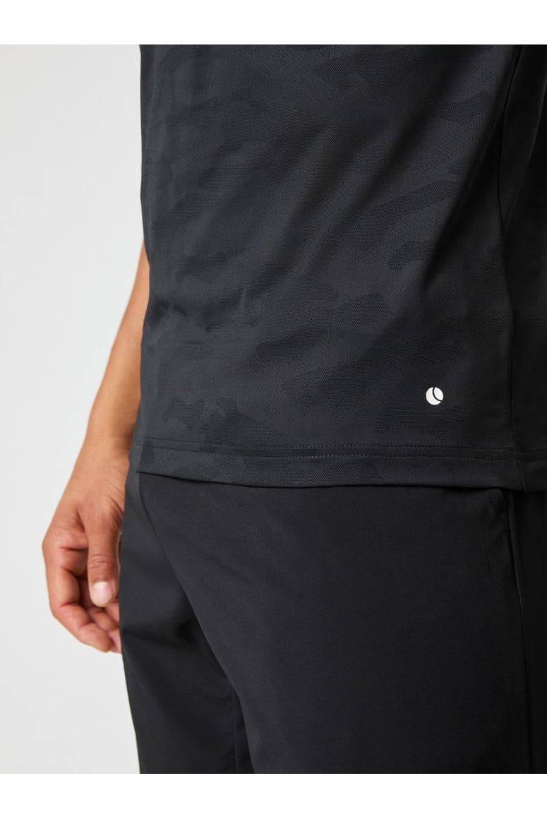 Το Björn Borg Borg Performance T-Shirt σε διαχρονικό μαύρο χρώμα (Black Beauty) είναι ιδανικό για δυναμικές προπονήσεις. Κατασκευασμένο από ανακυκλωμένο πολυεστέρα με ελαστάνη, διαθέτει ζακάρ ύφανση με καμουφλάζ μοτίβο που προσφέρει μοναδική υφή και ελαστικότητα. Η κανονική γραμμή και η στρογγυλή λαιμόκοψη εξασφαλίζουν άνεση, ενώ η ρίγα με το λογότυπο Borg στην πλάτη ενισχύει το αθλητικό σου στυλ.